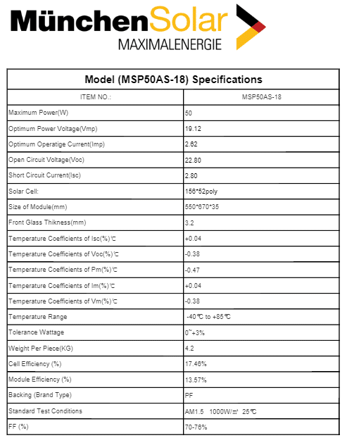 Das Polykristalline Solarmodul  mit einer Nennleistung von 50 WP eignet sich aufgrund seiner geringen